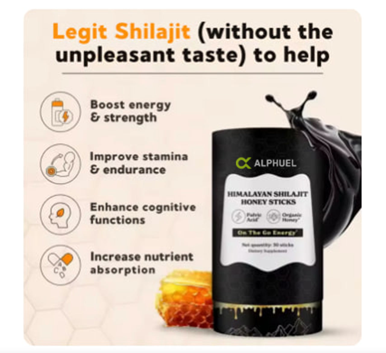 Just 1 Stick of Shilajit Honey every day is all you need to experience a natural boost in energy and stamina. Packed with powerful Shilajit and organic honey, this convenient, on-the-go supplement supports endurance, enhances mental clarity, and promotes overall vitality.